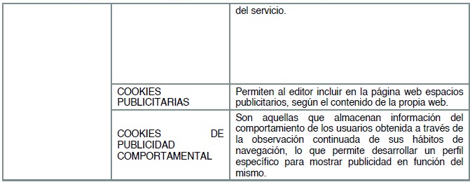 Téngase en cuenta que, si acepta las cookies de terceros, deberá eliminarlas desde las opciones del navegador o desde el sistema ofrecido por el propio tercero.